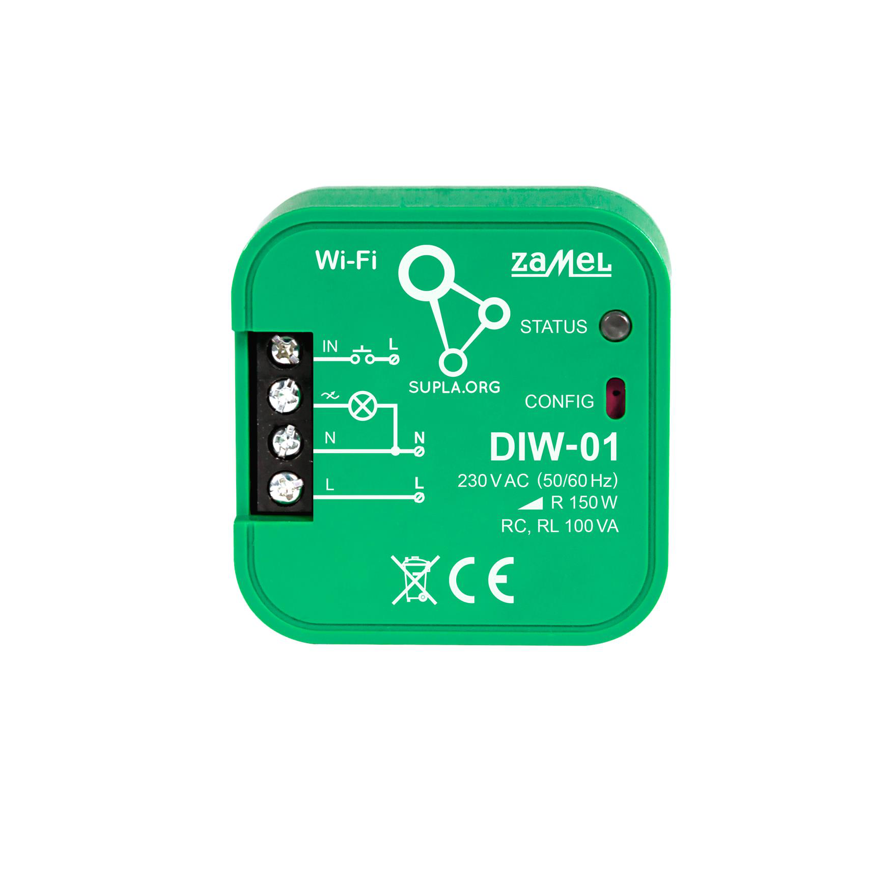 Ściemniacz DIW‑01 przeznaczony jest do regulacji natężenia oświetlenia lamp wyposażonych w konwencjonalne żarówki żarowe i halogenowe 230 V AC. Ściemniacz współpracuje także ze źródłami światła zasilanymi przez transformator elektroniczny. Zmiana natężenia oświetlenia jest możliwa także dla wybranych ściemnialnych żarówek LED i ściemnialnych świetlówek CFL. Sterowanie ściemniaczem może być prowadzone bezprzewodowo z poziomu aplikacji Supla oraz przewodowo z poziomu łącznika monostabilnego lub bistabilnego (tylko włącz, wyłącz).