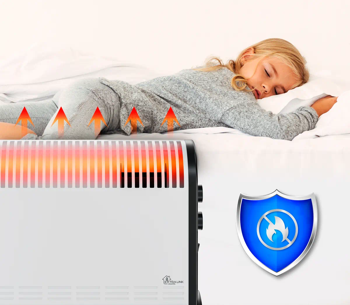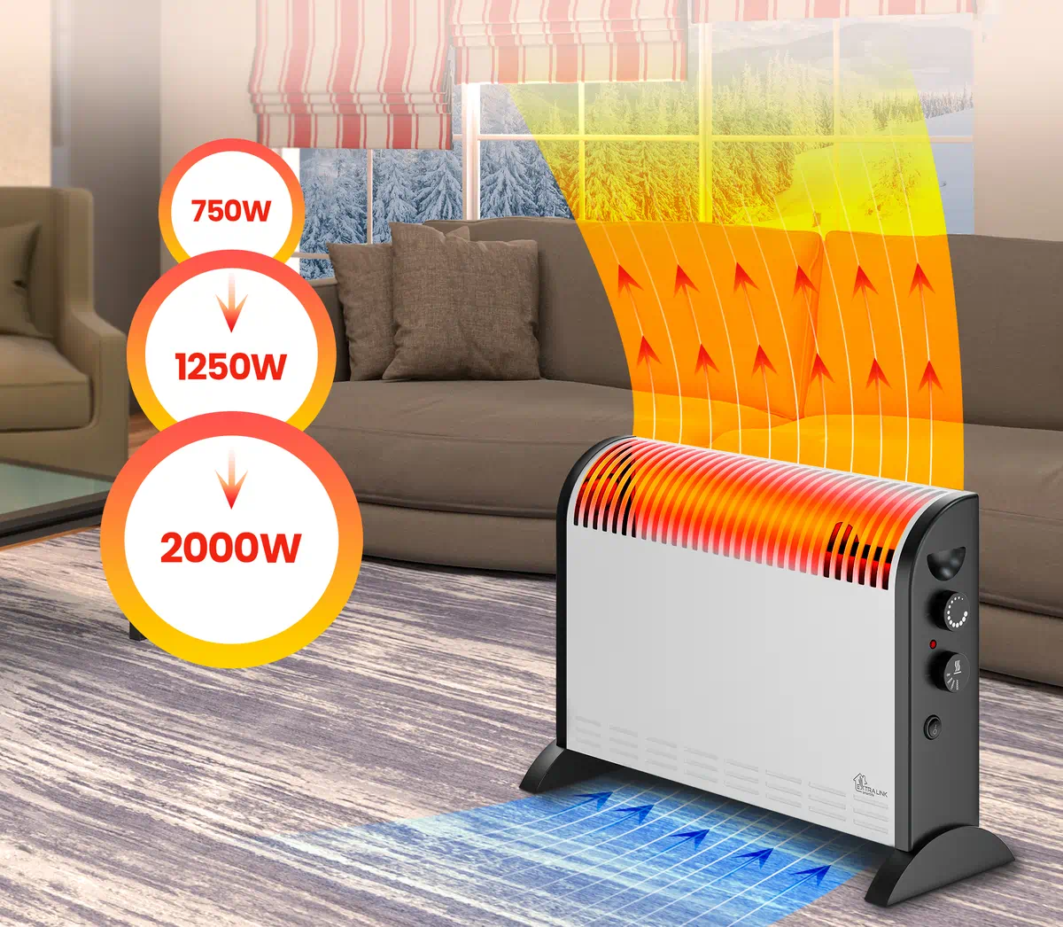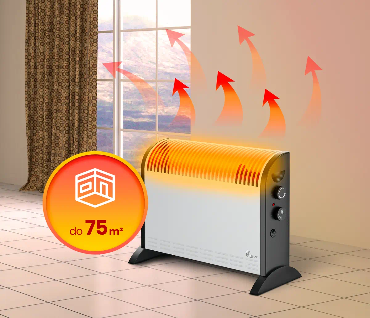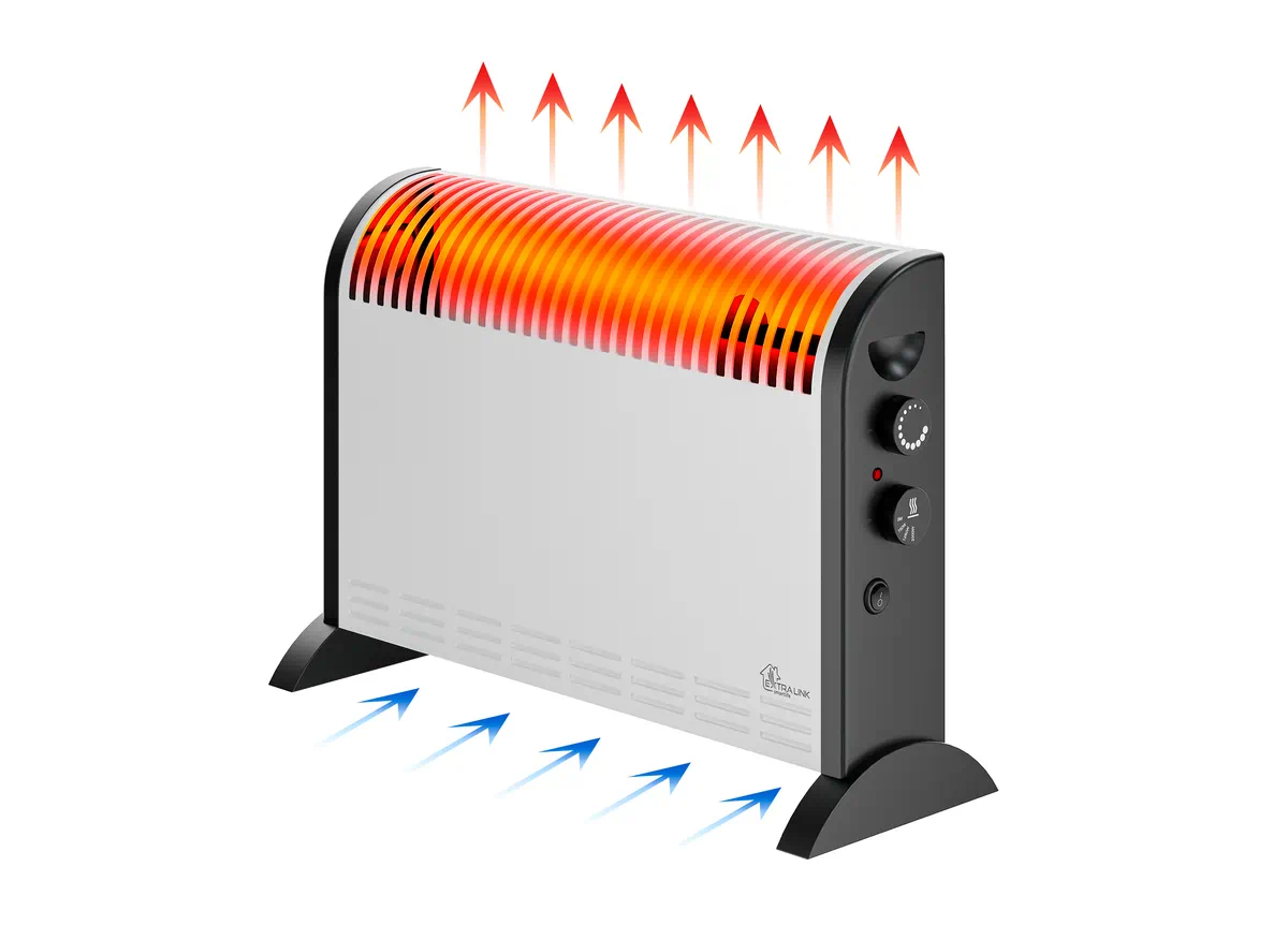 Grzejnik konwektorowy Extralink o maksymalnej mocy grzewczej 2000 W to idealny grzejnik, jeśli chcesz szybko ogrzać pomieszczenie. Użyj tego grzejnika jako awaryjnego zamiennika, gdy system centralnego ogrzewania nie działa lub jako grzejnik w okresie między gorącymi i zimnymi porami roku lub po prostu używaj go w pomieszczeniach, które nie mają centralnego ogrzewania.