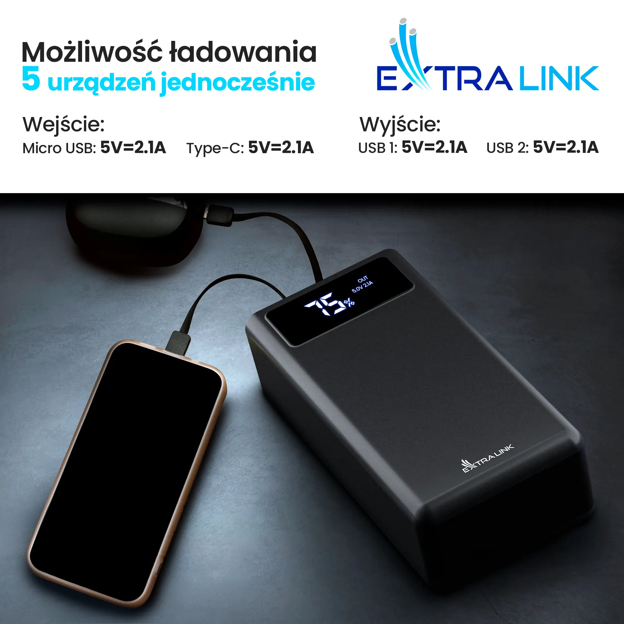 Ekonomiczny power bank o wysokiej pojemności 50000 mAh marki Extralink