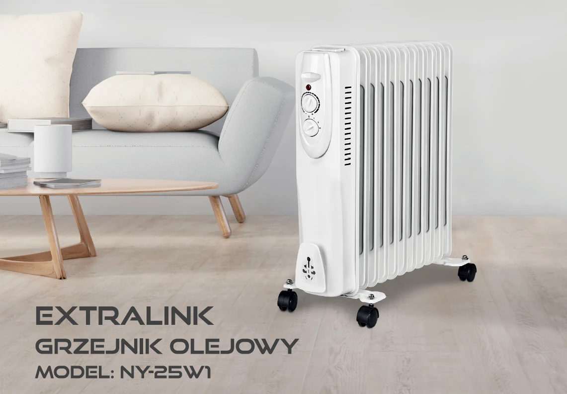 Grzejnik olejowy Extralink zostanie automatycznie wyłączony, jeśli dojdzie do przegrzania lub awarii, a następnie uruchomi się ponownie, gdy temperatura spadnie do normalnego poziomu.