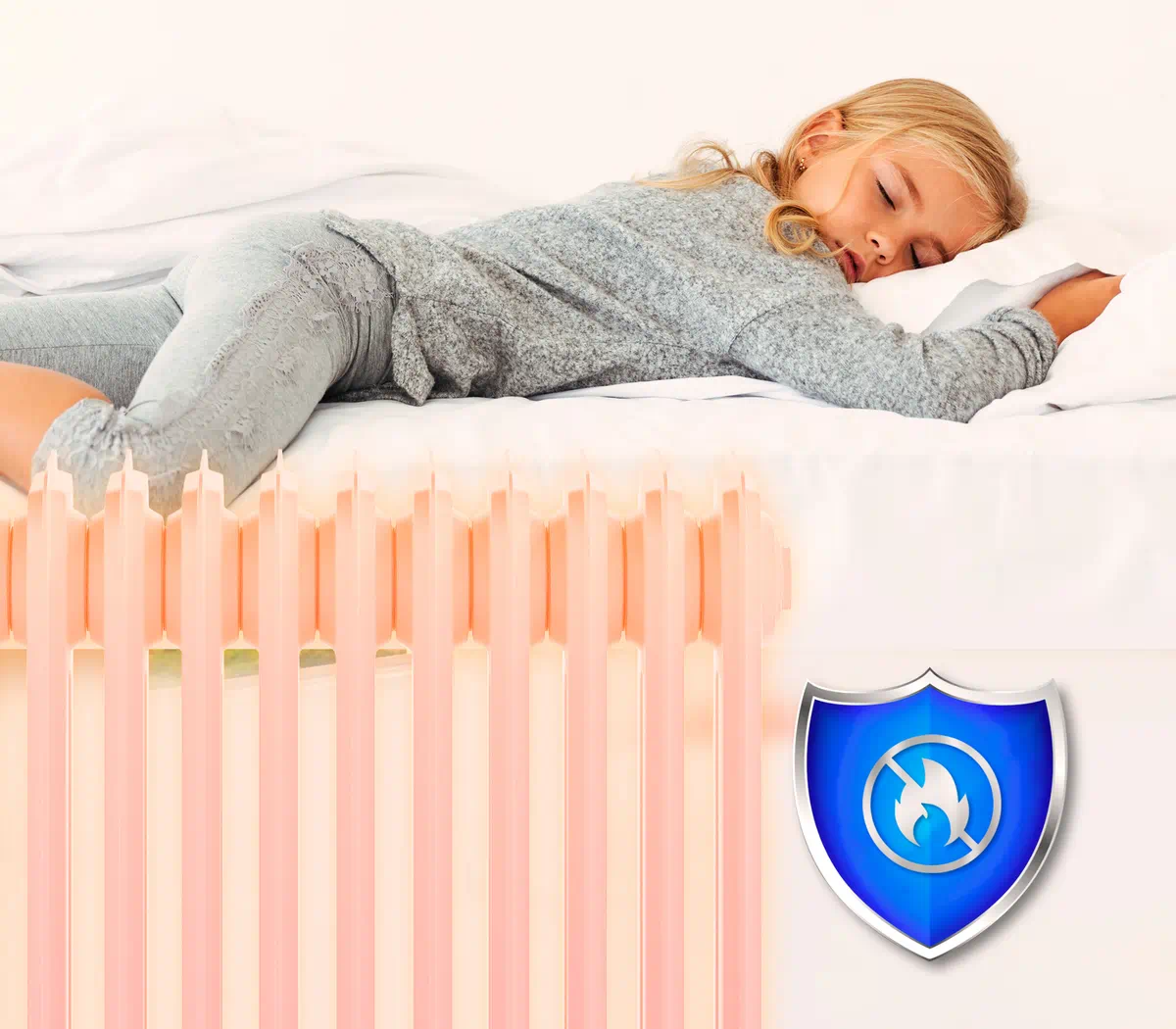 Wyjątkowa konstrukcja szczeliny termicznej 11 sekcji maksymalizuje przepływ ciepła do pomieszczenia przy jednoczesnym utrzymaniu niskiej temperatury powierzchni grzejnika.