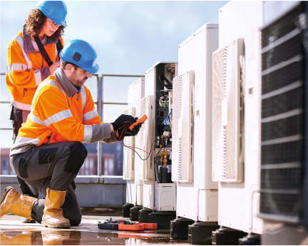 Montaż i konserwacja instalacji klimatyzacyjnej na dachu.