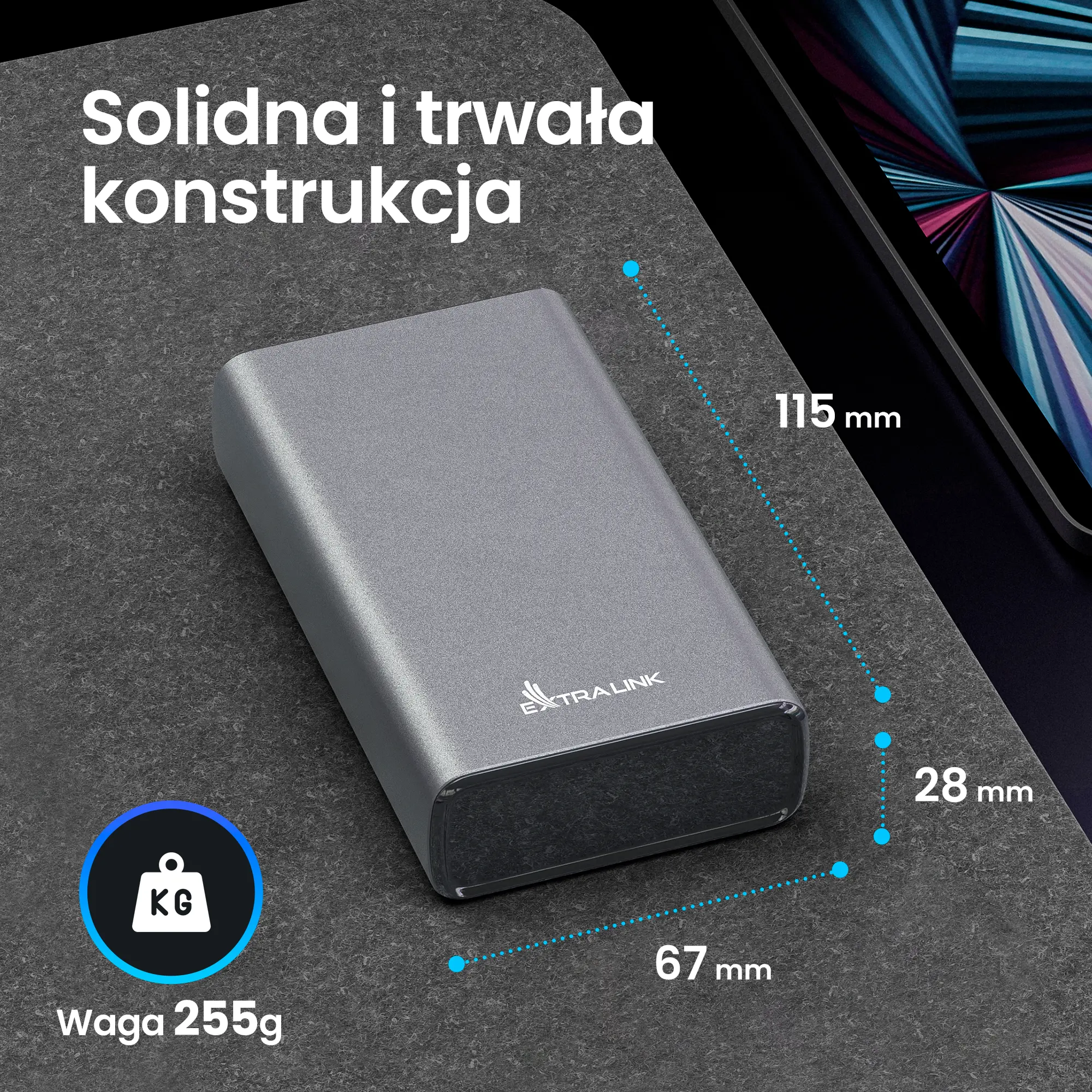 Power bank 20000 mAh 45W Power Delivery marki Extralink – szybkie, wydajne ładowanie