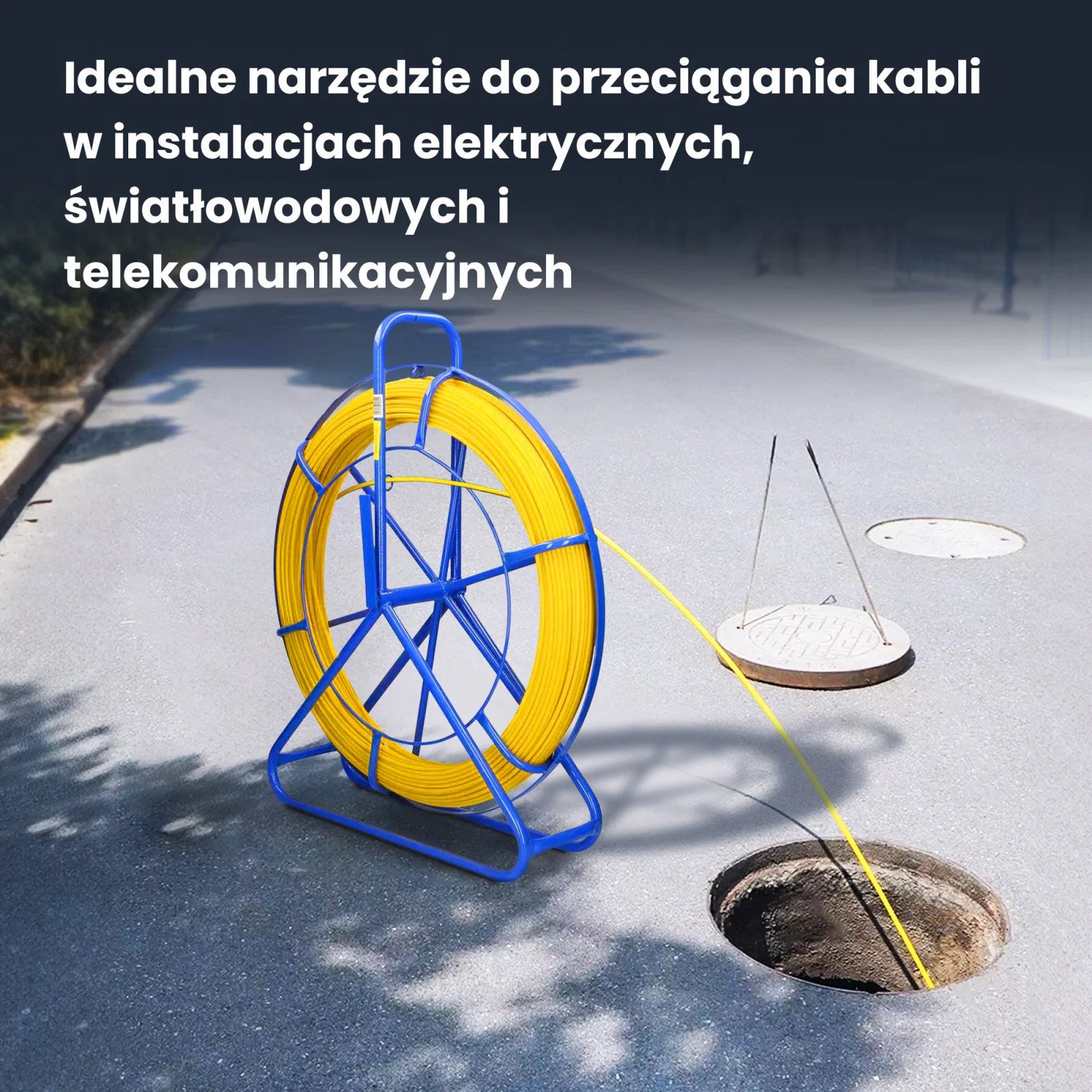 Pilot z włókna szklanego do przeciągania kabli o średnicy 8 mm i długości 75 metrów