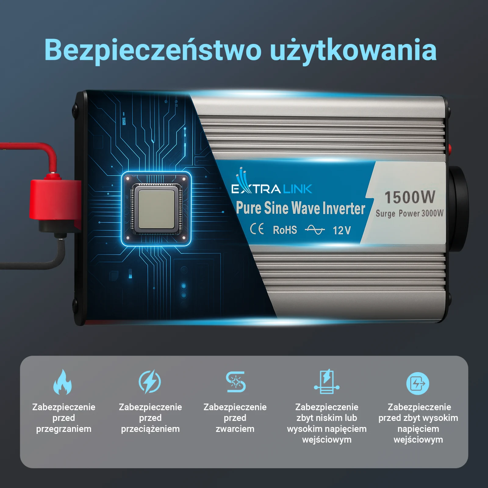 Extralink przetwornica napięcia OPIP-1500W czysty sinus