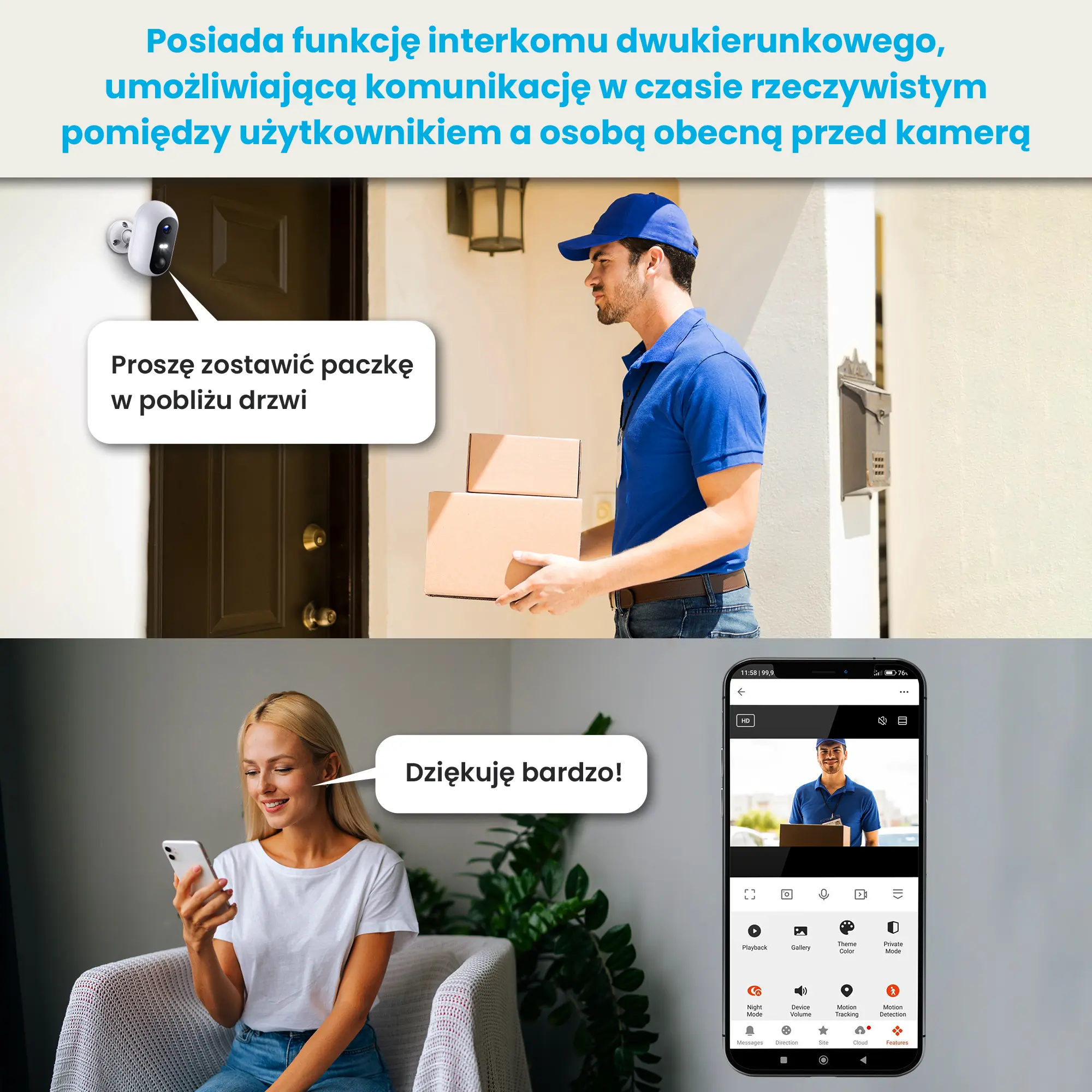 Kamera Extralink SolarEye posiada matrycę o rozdzielczości Full HD 1080p, co gwarantuje wysoką jakość obrazu i szczegółowość nagrywanych materiałów. To pozwala na uzyskanie wyraźnych i klarownych nagrań, ułatwiających identyfikację osób i zdarzeń. Dodatkowo, kamera wyposażona jest w funkcję interkomu dwukierunkowego, umożliwiającą konwersację w czasie rzeczywistym pomiędzy użytkownikiem a osobą obecną przed kamerą. Jest to przydatne narzędzie do monitorowania oraz komunikacji na odległość.