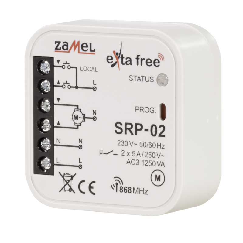 Sterownik rolet SRP‑02 przeznaczony jest do sterowania napędami rolet okiennych, w których zastosowano silnik elektryczny 230 V z wyłącznikami krańcowymi.