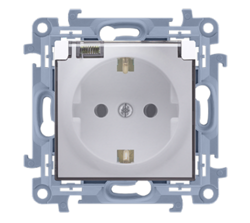 Gniazdo pojedyncze SCHUKO z uszczelką z przesłonami klapką trans