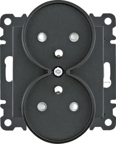 Gniazdo zasilające z uziem. podwójne z przesł. Styków, 16A/250VAC