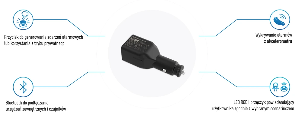 Dla wygody użytkownika, wskaźnik LED RGB pokazuje aktualny stan urządzenia. Ponadto, FMP100 posiada wbudowany konfigurowalny brzęczyk, który może być wykorzystywany do powiadamiania kierowców w różnych scenariuszach użytkowania, takich jak: jazda ECO, nadmierna prędkość lub nadmierna praca na biegu jałowym.