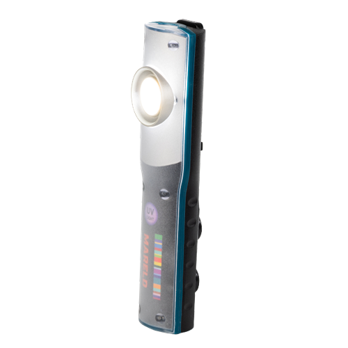Akumulatorowa lampa ręczna Mareld Illumine800 RE UV o wysokim współczynniku oddawania barw (RA95), z możliwością regulacji światła zimnego i ciepłego. Mareld Illumine 800 RE UV to lekkie, poręczne i wyjątkowo odporne na uderzenia oświetlenie. Magnes i haczyk do zawieszania zapewniają elastyczność użytkowania. Podczas gdy lampa znajduje się w podstawce ładującej i ładuje się, działa funkcja światła awaryjnego, aktywująca się przy zaniku zasilania, która zapewnia siłę światła 100 lm przez ok. 1 godz. Lampa wyposażona jest w źródło światła UV, umieszczone w górnej części lampy. Światło UV pozwala wykrywać pęknięcia, nieszczelności i wycieki w układach chłodzenia lub rurach wodociągowych, a także pleśń w konstrukcjach budowlanych.