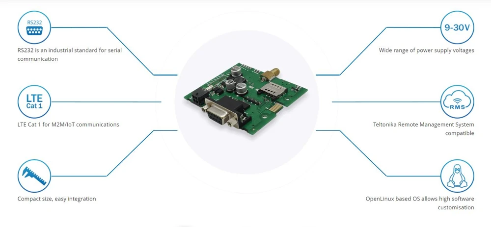 Teltonika TRB142 to karta sieciowa LTE oraz bramka przemysłowa dla aplikacji Internet of Things (internet rzeczy). Urządzenia z serii TRB zostały zaprojektowane tak, aby były małe, lekkie i energooszczędne, co ułatwia realizację projektów IoT (Internet of Things). Karta sieciowa TRB142 jest wyposażona w szeroko wykorzystywany port RS232 do zdalnego zarządzania urządzeniami oraz w wydajny procesor ARM Cortex-A7 1,2 GHz i 128 MB pamięci RAM. Posiada też funkcję LTE oraz środowisko Linuksa, które oferuje wysoki stopień personalizacji. Karta/bramka IoT jest przeznaczona do nowoczesnych aplikacji przemysłowych.